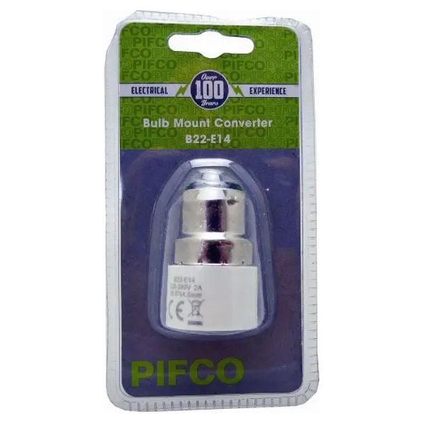 Effortlessly convert your light bulbs with the Pifco Bulb Mount Converter B22-E14. This durable converter allows you to easily switch from B22 to E14 bulbs, increasing the versatility and functionality of your lighting. No need to purchase new fixtures - simply use this converter for a seamless transition.