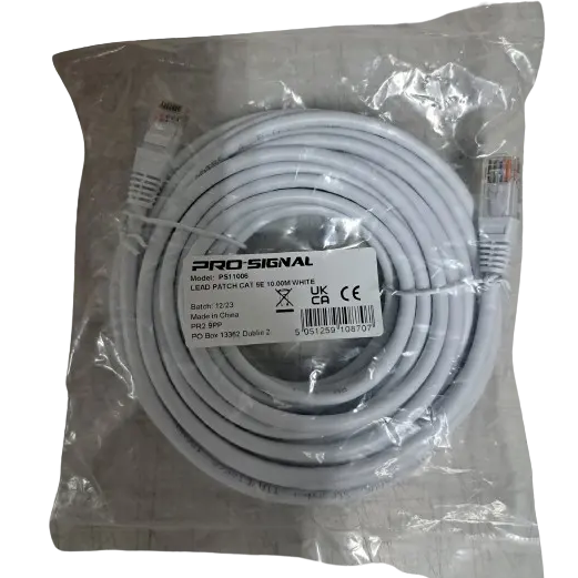 RJ45 to RJ45 UTP Category 5E patch cable with low-profile, moulded strain reliefs.