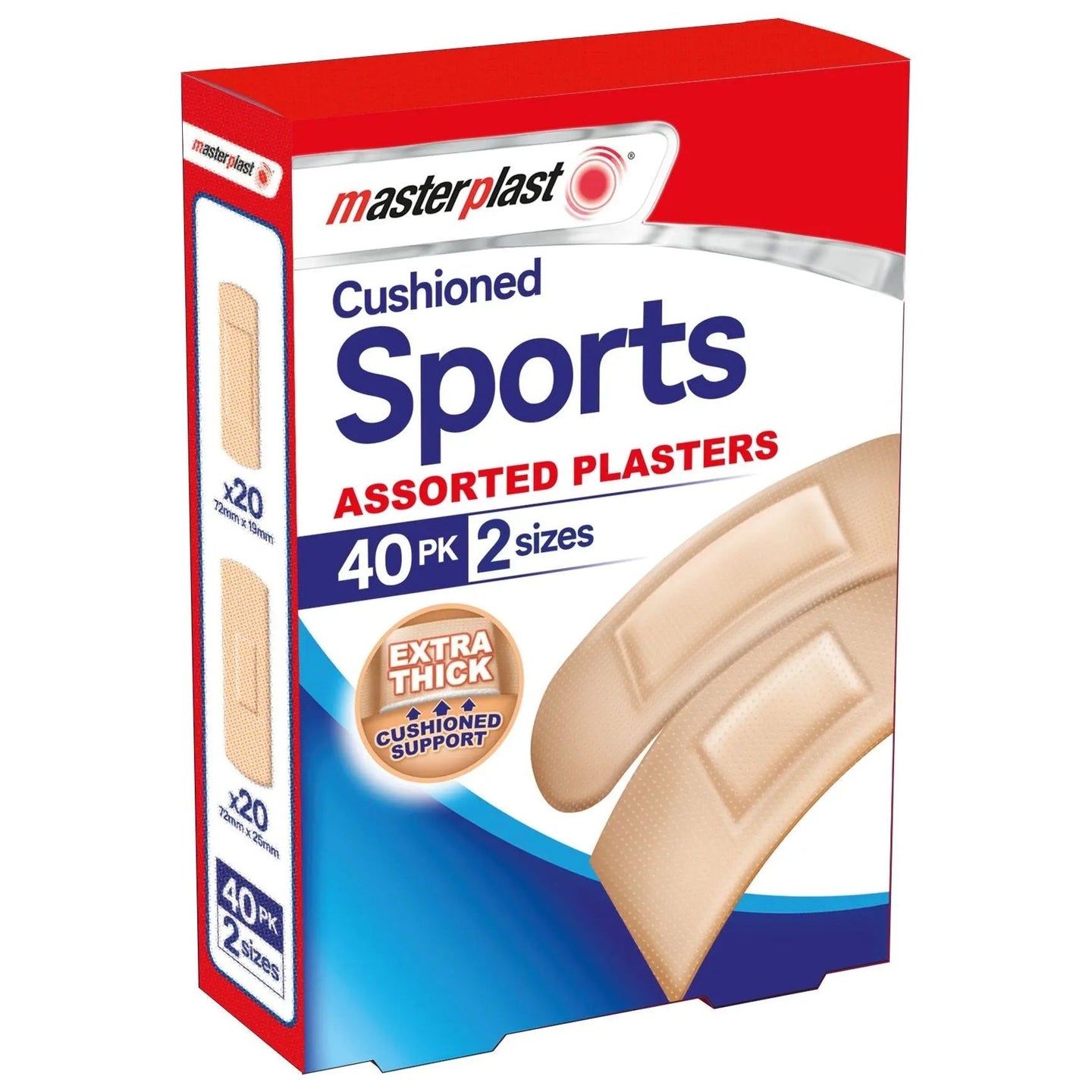 Masterplast Cushioned Sports Plasters protect from light impact and pressure, ideal for blisters, sore spots, minor cuts or grazes. Extra tough, protecting wounds during outdoor activities, running, playing sports, DIY and gardening. Each plaster is air permeable allowing the wound to breathe, aiding the healing process, suitable for protecting blisters and stopping shows from rubbing skin. roviding long lasting wound protection from germs, dust and dirt. Durable thick top layer with an absorbent wound pad to protect from infection whilst the wound heals. Plasters sizes 7.2cm x 1.9cm and 7.2cm x 2.5cm.