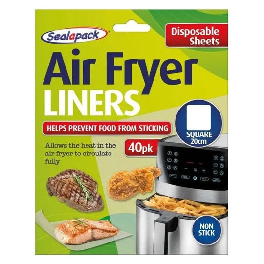 Helps maintain your air fryer in tip top conditionNot dishwasher safeFeatures and benefitsWill fit easily into all types of air fryerHelps prevent food from sticking20cm Square Air Fryer LinerPack of 40Non-stickDisposable sheetsRegular price £0.99 -