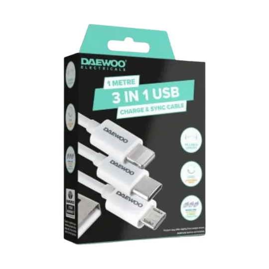 1 Metre 3 In 1 USB Charge And Sync Cable Daewoo