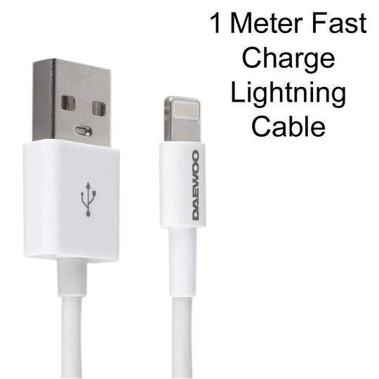 Experience fast charging and fast data sync with Daewoo Electricals 1 Metre Fast Charge Lightning USB Data & Sync Cable! This 8-pin head charging cable is compatible with Apple products and is phone case friendly.5V 2.1A...Regular price £1.25 -