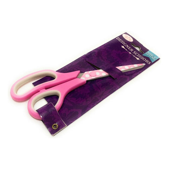 Extra sharp designer scissors for craft and Household multi purpose use. Polka Dot pink printed Extra sharp for fast cutting High quality guaranteed Size: 21 cmRegular price £0.75 -
