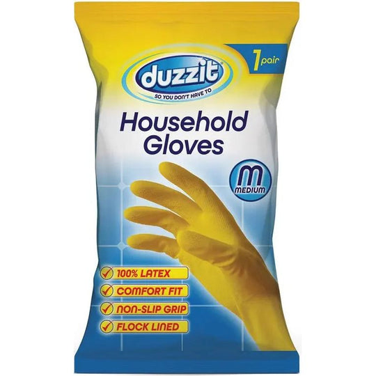 Protect your hands from harsh chemicals and hot water with these Duzzit household gloves available in medium and large . These high-quality gloves provide a comfortable and secure fit, allowing you to easily tackle any household...Regular price £0.59 -