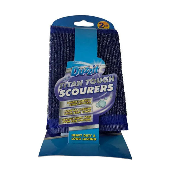 Duzzit - Titan Steel Scourer 2Pk Heavy duty and long lasting. Removes grease & grime with ease.Great for cleaning grills, BBQs and pans.Removes burnt food from pots and pans.Regular price £0.50 -