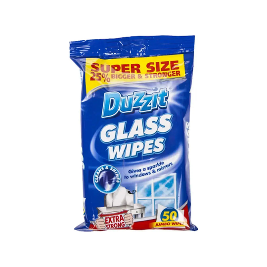 Duzzit glass, window, mirror cleaning wipes.25% free. Pay for 40 wipes but receive 50.Comes in a handy resealable pack pack.Gives a sparkle to all types of glass, windows and mirrorsExtra strong wipes – less likely to...Regular price £1.29 -