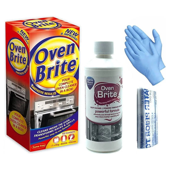 Oven brite oven cleaner kit 500ml All-in-one oven cleaner kit which comes in an easy to use bottle format with bag and gloves included Cleans inside the oven using a blend of degreasers; it is designed...Regular price £2.29 -