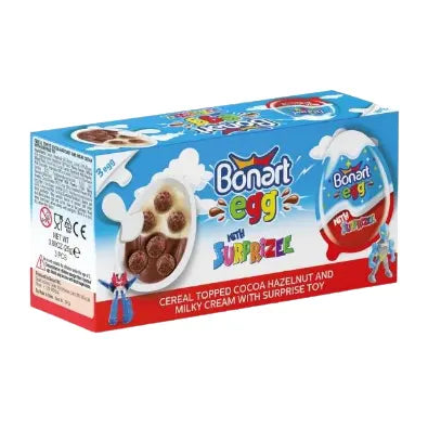 The Bonart egg with Surprise is a beloved treat worldwide, combining chocolate with a hidden toy. Loved by all ages especially kidsRegular price £1.65