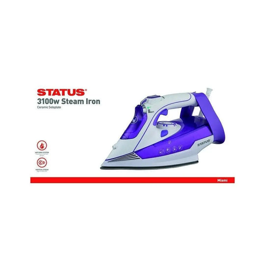 Status 3100w Steam IronNon Stick soleplatePlate Dimensions 18cm × 10cmPower on Indicator LightSpray FunctionContinuous Temperature ControlOverheat ProtectionRegular price £19.99 -