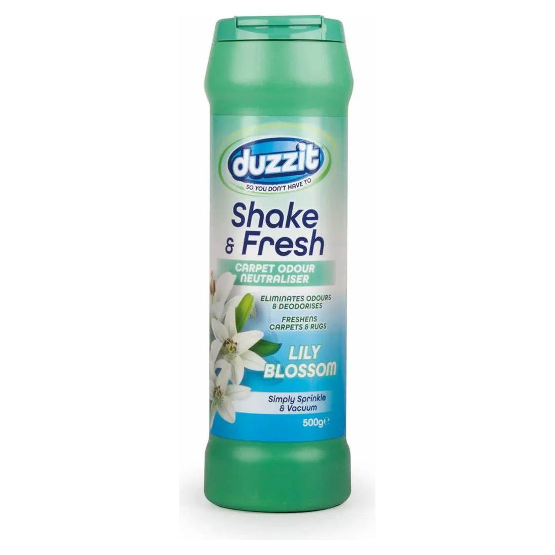 Our Duzzit Carpet Freshener in Lily Blossom scent is perfect to freshen up your home. Simply sprinkle all over your carpet and vacuum. You can be assured your room will be left smelling fresh and clean!