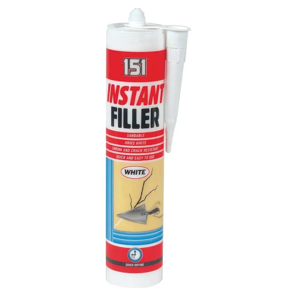 Instant Filler - White 280ml. 151 Instant Filler, ready mixed, no shrinkage, sagging or cracking after use. Ideal for indoor and outdoor repairs. 151 Instant Filler, sand down plaster, plasterboard, brick wood or stone, remove dust and debris. Fill with 151 Instant Filler and it will dry quickly, white and smooth. 151 Instant Filler, suitable for a wide range of indoor and outdoor repairs. Always ensure area is clean and dry before applying. Sand after filler is dry if required. 151 Instant Filler, use around the home indoors and out to repair cracks, fill holes and gaps.