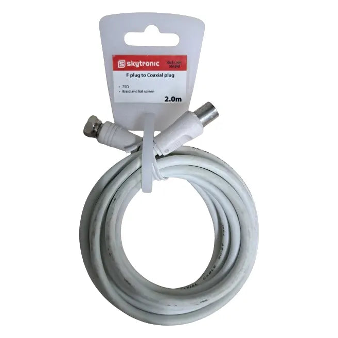 Introducing the Skytronic F Plug To Coaxial Plug 2m. Seamlessly connect your devices with this high-quality cable, providing reliable and clear transmission of audio and video signals. Experience superior performance and eliminate signal loss with this essential cable for your home entertainment setup.