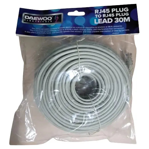 Daewoo RJ45 Plug To RJ45 Plug Lead 30M Features:High quality Ethernet Network Cable with two RJ45 ConnectorsSuited for 10Mbps/100Mbps networkWorks with your devices which have a Standard Ethernet Port such as: computers, laptops, Specification:Cable Quality: 30%...Regular price £14.99 -