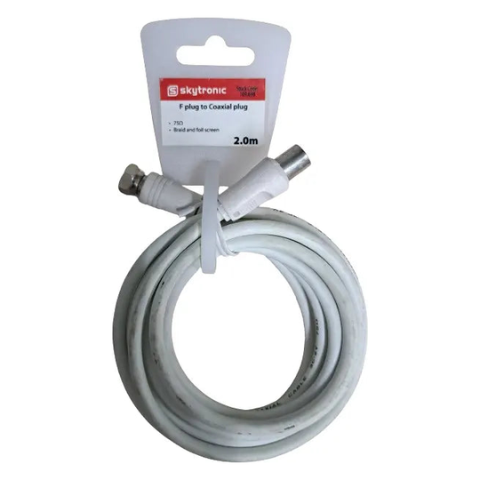 Introducing the Skytronic F Plug To Coaxial Plug 2m. Seamlessly connect your devices with this high-quality cable, providing reliable and clear transmission of audio and video signals. Experience superior performance and eliminate signal loss with this...Regular price £1.00 -