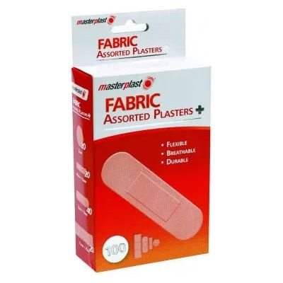 FlexibleBreathableDurable100pk FabricThese Masterplast Plasters are the ideal dressing for scrapes and grazes. The non stick pad prevents adhesion to the wound and so promotes faster healing.The cushioned dressing protects from further knocks and chafing.Regular price £1.19