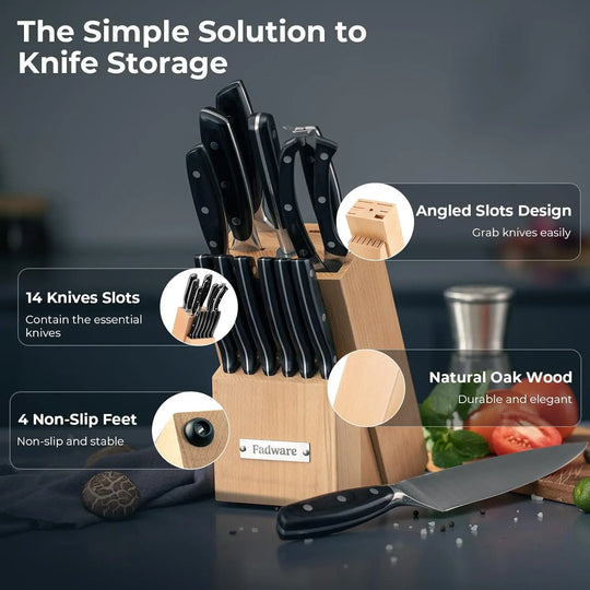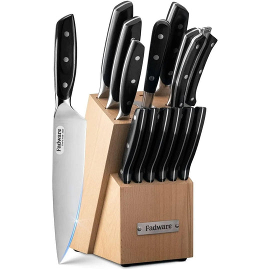 Kitchen Knife Set with Block, Fadware 14-Piece Knives Set with Sharpener, Chef’s Knife, Steak Knife Set, Kitchen Scissors, Black