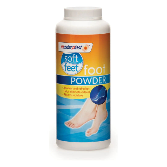 Masterplast Soft Feet Foot Powder 170g. Masterplast Soft Feet Foot Powder Soothes & Refreshes Eliminates Odour Absorbs Moisture 170g Can be used daily after a shower or bath to refresh feet Feet feels freshSoothes & refreshesHelps...Regular price £1.45 -