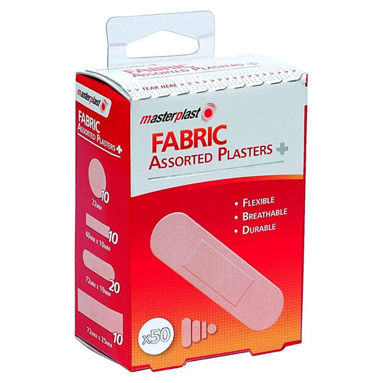 FlexibleBreathableDurable50pk FabricThese Masterplast Plasters are the ideal dressing for scrapes and grazes. The non stick pad prevents adhesion to the wound and so promotes faster healing.The cushioned dressing protects from further knocks and chafing.Regular price £0.69 -