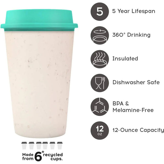 Made from recycled single-use paper cups and designed for 5 years use.100% recyclable at the end of its life.Insulated to keep your hands protected and your drink warm.A familiar cup design, with a durable snap fit lid.BPA &...Regular price £1.50