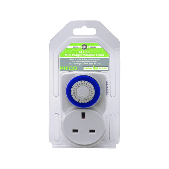 Pifco TMR1007 24 Hour Mini Programmable Timer - WhitePifco's 24 hour plug in timer gives you precise control over your energy consumption with its 30 minute segmentsTurn your appliances on or off whether you are in...Regular price £2.79